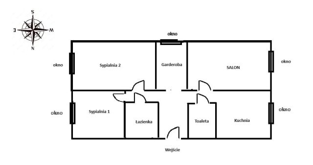 Liczba pokoi: 3 (osobne i ustawne) + garderoba